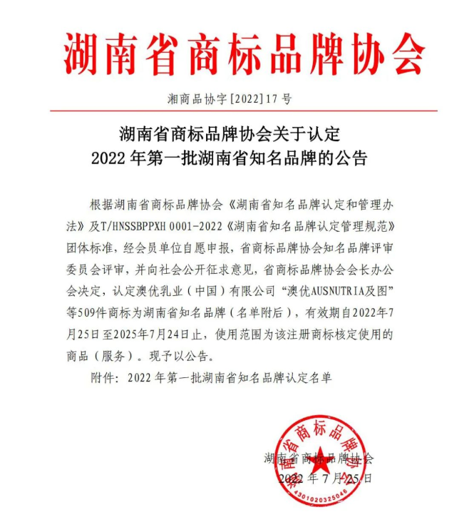 2022年7月25日,经湖南省商标品牌协会认定,NO钱包官网智通成功入选《湖南省知名品牌》。